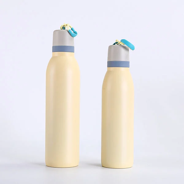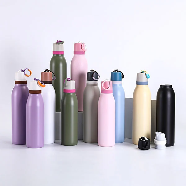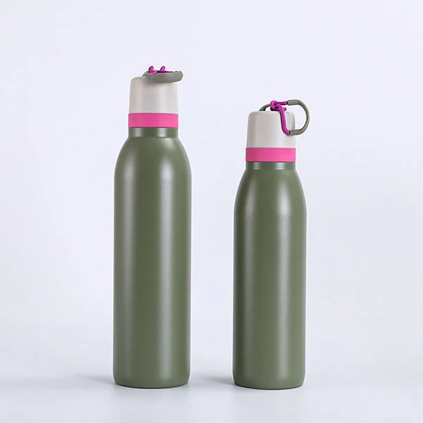 Há duas capacidades nesta garrafa de água de aço estilista, uma é de 540 ml e a outra é de 710 ml.