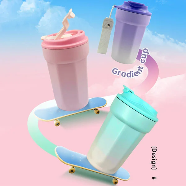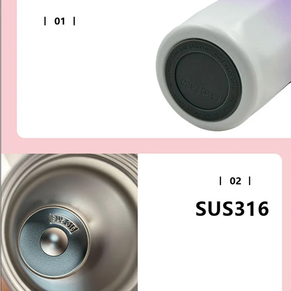 É uma garrafa de aço inoxidável isolada a vácuo com palha, o material é feito de 316 aço inoxidável (parte interna) e 201 aço inoxidável (parede externa), a capacidade é de 500 ml.