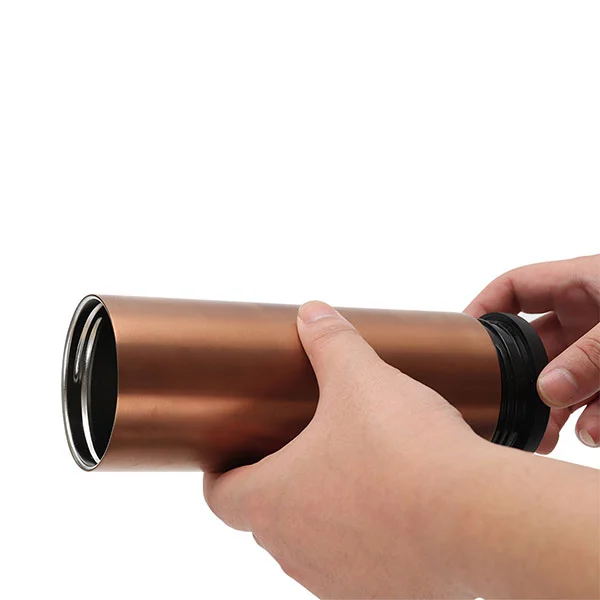 Este copo é um novo conceito de copo isolado de aço inoxidável. Embora seja um copo térmico comum, seu design pode ser transformado em dois copos térmicos separados. Sim, é uma xícara de térmicas aço inoxidável a vácuo. Um é um copo principal com capacidade de 600 ml e o outro é uma caneca de 450 ml.