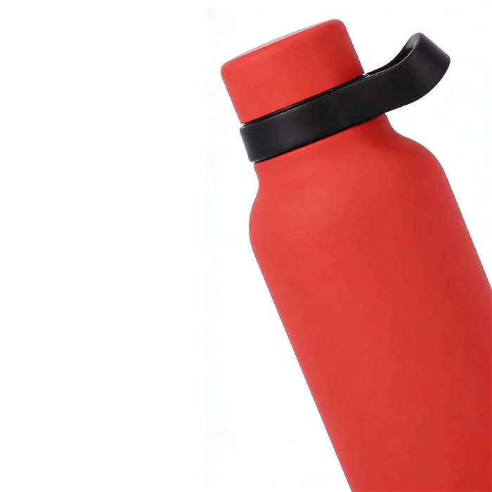 O corpo da garrafa é combinado com uma alça portátil preta, leve e compacta, facilitando o transporte em mochilas e bolsos laterais para deslocamentos e viagens.