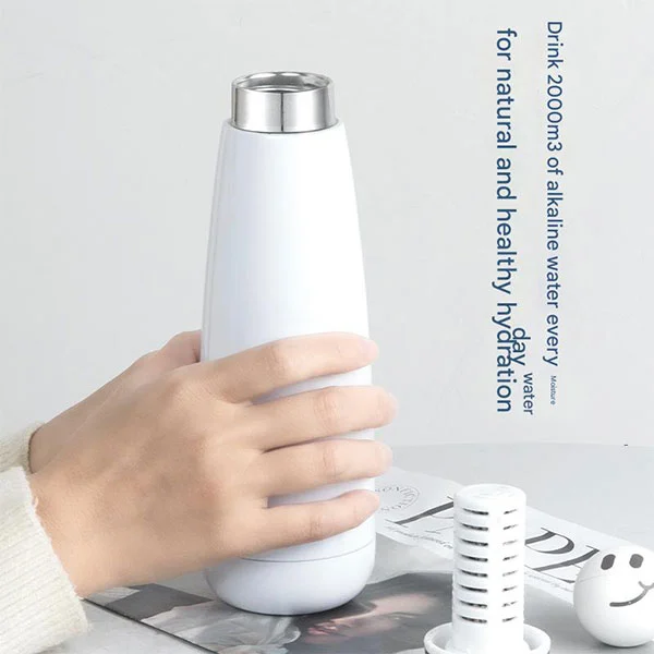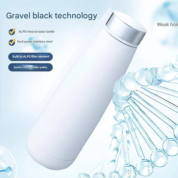 Por que uma águaCopa isolada purificadora? Projetamos uma área de armazenamento de chá na tampa e, dentro dela, colocamos materiais ecológicos especiais - partículas minerais Alps. As partículas dos Alpes são ricas em elementos como alumínio, magnésio, ferro, sódio e potássio. Esses elementos são benéficos para a saúde e podem melhorar a acidez e a alcalinidade da água. Quando você bebe água, a água passa por essas partículas para purificação, tornando -se levemente alcalina. Isso torna sua água potável mais segura.