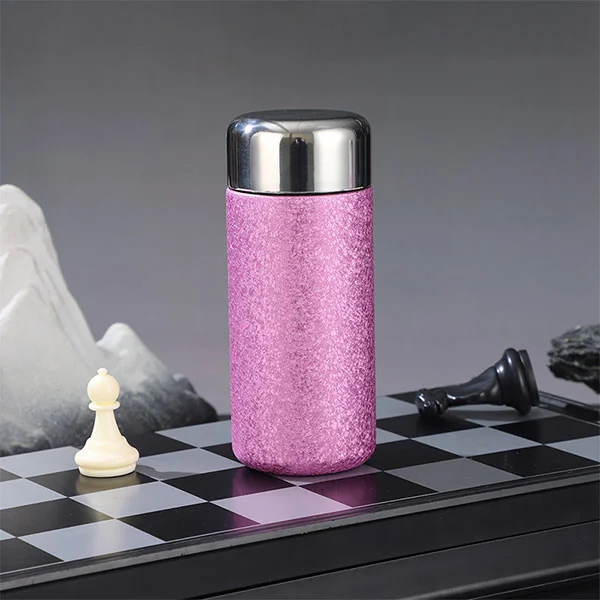 A superfície desta mini garrafa de aço inoxidável de bolso é revestida com um acabamento de textura de alta qualidade, dando-lhe uma aparência tão bonita quanto um pedaço de floco de neve.