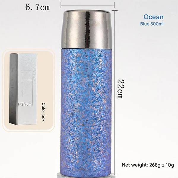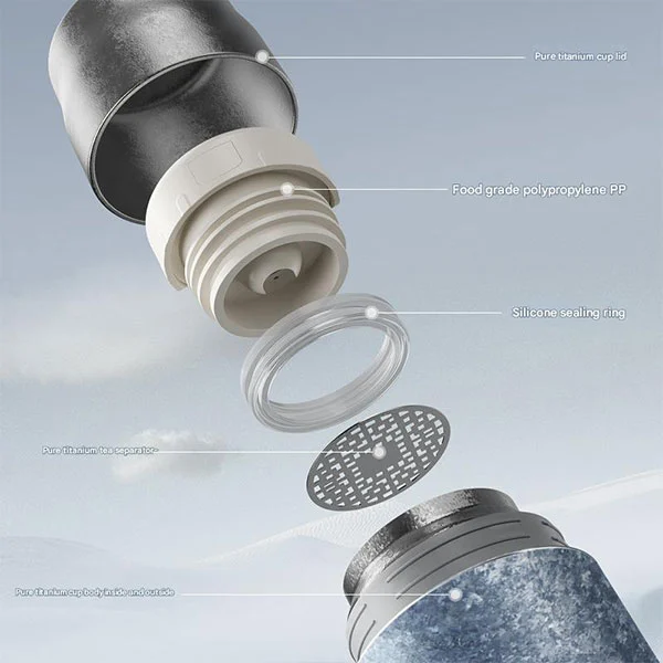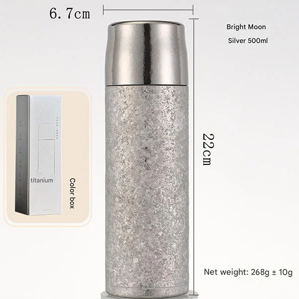 Cervejeiro de chá clássico, a garrafa de titânio apresenta um copo à prova de vazamentos feito de titânio puro por dentro e por fora, equipado com tampas à prova de vazamentos, tampas de titânio puro e anti-escaldante de camada dupla!