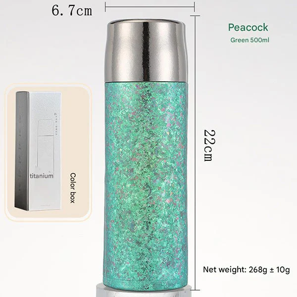 As garrafas de água de titânio adotam um design de isolamento a vácuo de camada dupla. Foi comprovado que nossas garrafas de água de metal fornecem o melhor isolamento para suas bebidas, seja cola gelada ou café quente. As bebidas quentes podem ser mantidas quentes por até 8 horas, enquanto as bebidas frias podem ser mantidas quentes por até 12 horas. (Dados experimentais: Isolamento: Adicione água à temperatura ambiente de 99 ° C, e a temperatura excederá 60 ° C após 6 horas de isolamento; Refrigeração: Adicione água à temperatura ambiente de 0 ° C, e a temperatura estará abaixo de 5 ° C após 6 horas de isolamento.)